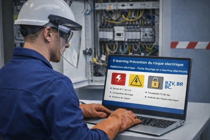Les formations e-learning sont accessibles à distance et permettent d’acquérir les connaissances théoriques nécessaires à la compréhension des risques électriques et des principes de prévention.